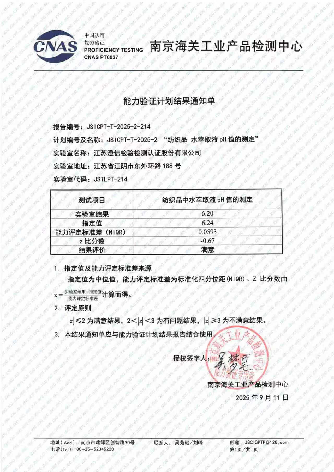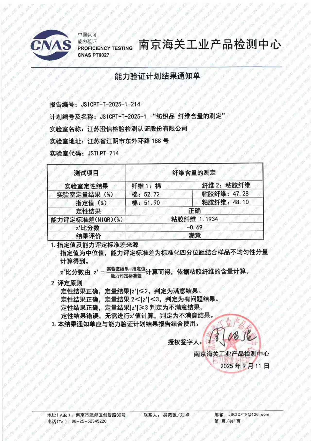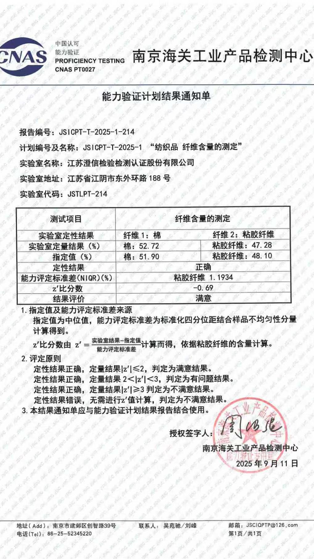 本次比对试验项目包括绒子含量、(绒丝+羽丝)含量、 浊度、蓬松度。结果评定基于绒子含量、(绒丝+羽丝)含量、浊度和蓬松度的数据分析及小样识别准确性、记录填写规范性共6个方面。在发布的结果中,纺织中心取得了100分的优异成绩,充分体现纺织中心在羽绒检测方面的精湛技术及雄厚实力。